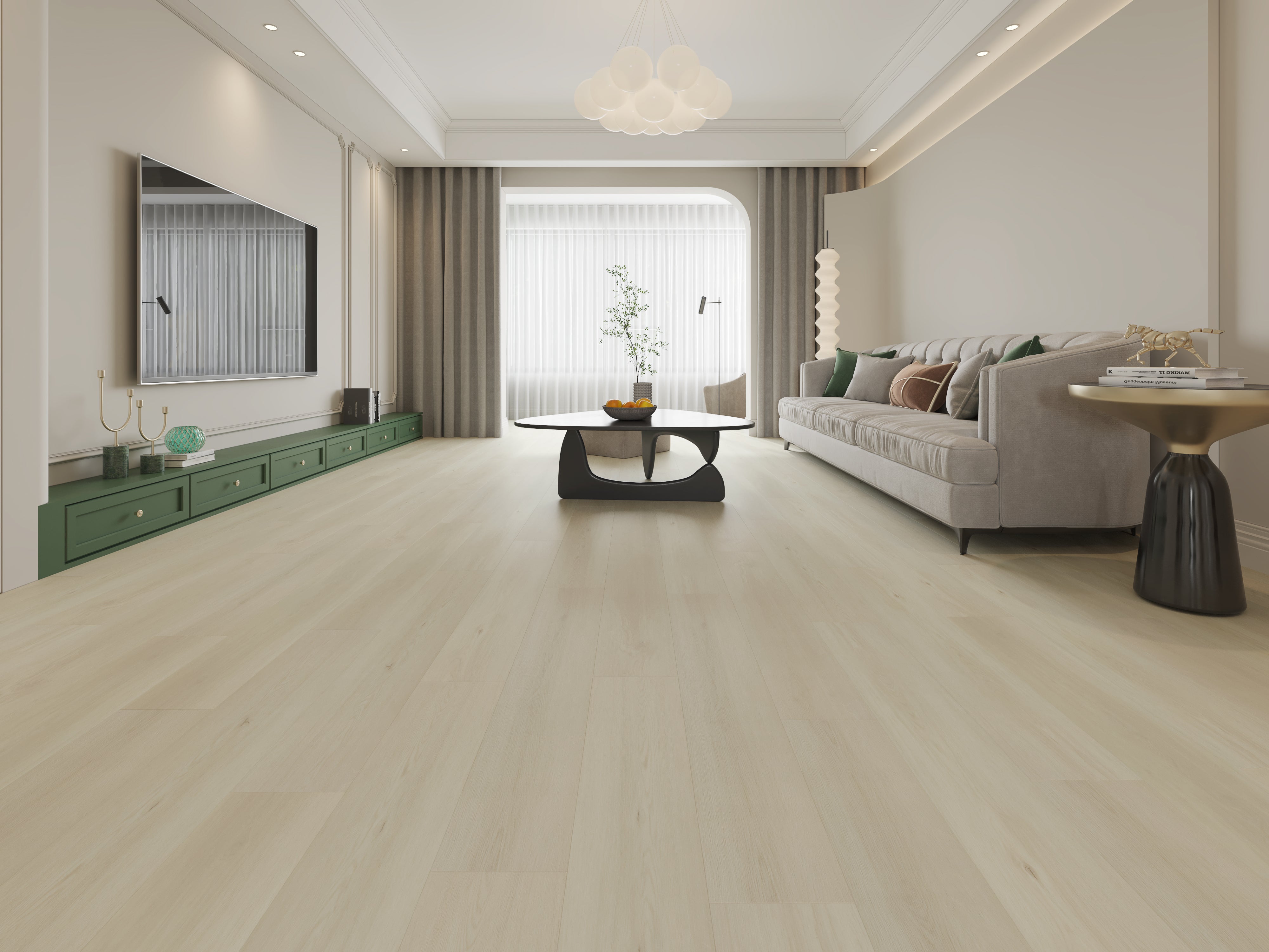 Bring warmth and timeless elegance into your space with Bellevue Cream SPC LVT flooring. Its soft cream and beige tones paired with a natural wood-grain texture create a bright, inviting atmosphere that complements any style of décor. Crafted with a 6.5mm thickness and a 20 mil wear layer, this 9x60 wide plank flooring is built to last—perfect for Houston homes and commercial spaces that demand both beauty and durability. The beveled edge detailing adds depth and realism, making Bellevue Cream nearly indistinguishable from hardwood.