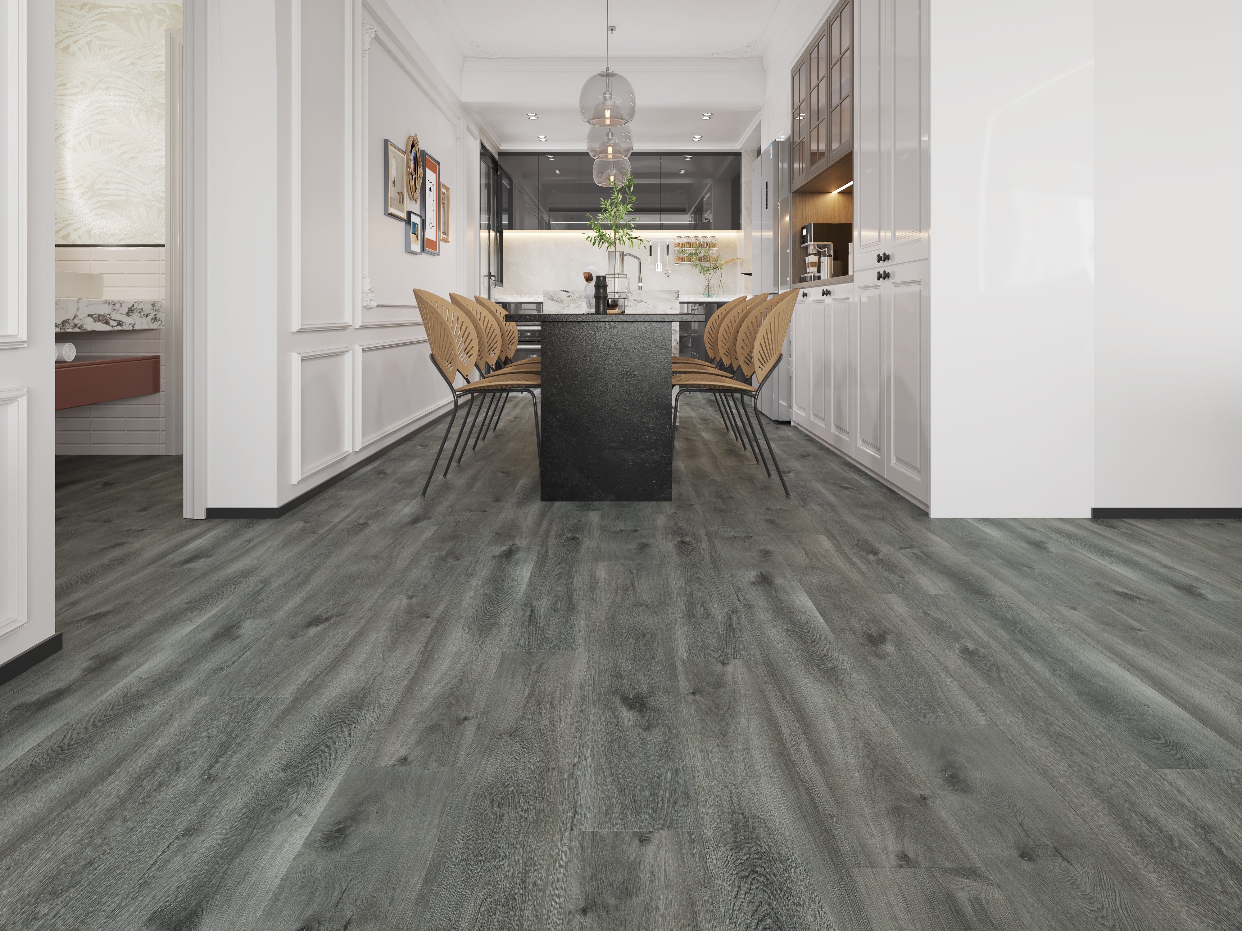 Bring a sleek, modern look into your home with Neptune Gris SPC LVT flooring. The cool gray tones and 9x60 wide plank design give any space a clean, airy feel while offering the durability and performance you expect from SPC. With a 6.5mm thickness and 20 mil wear layer, this floor is built to last, resisting scratches, dents, and heavy foot traffic. The beveled edge detail enhances the natural wood look, making Neptune Gris a versatile choice for both contemporary and classic interiors.