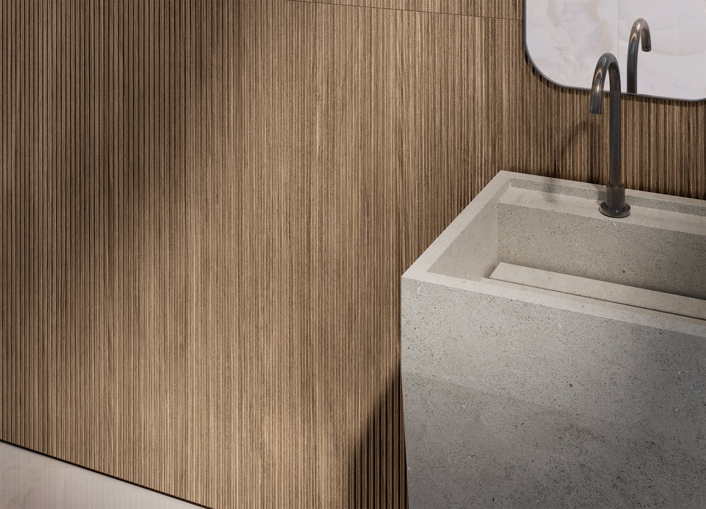 Elba Series Fluted Porcelain Tile – Elba Oak (24×48)