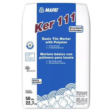 Mapei Kera 111 is a one-part, thin-set mortar that is suitable for both indoor and outdoor applications with stone, ceramic, porcelain, and quarry tile. Its special dry polymer formulation ensures strong adhesion to both the substrate and tile.