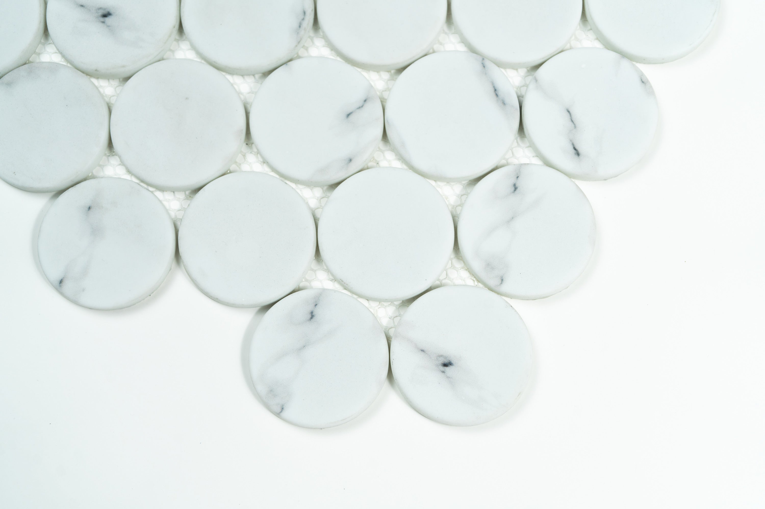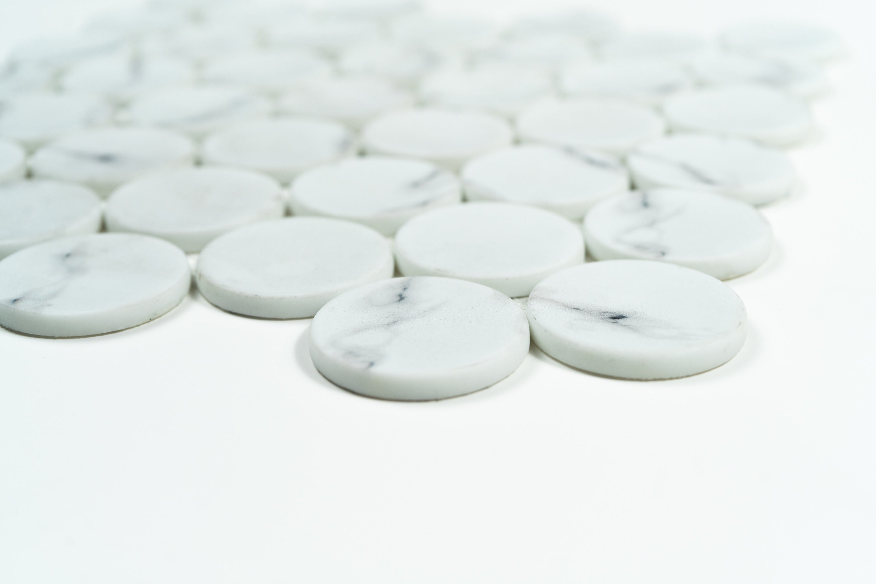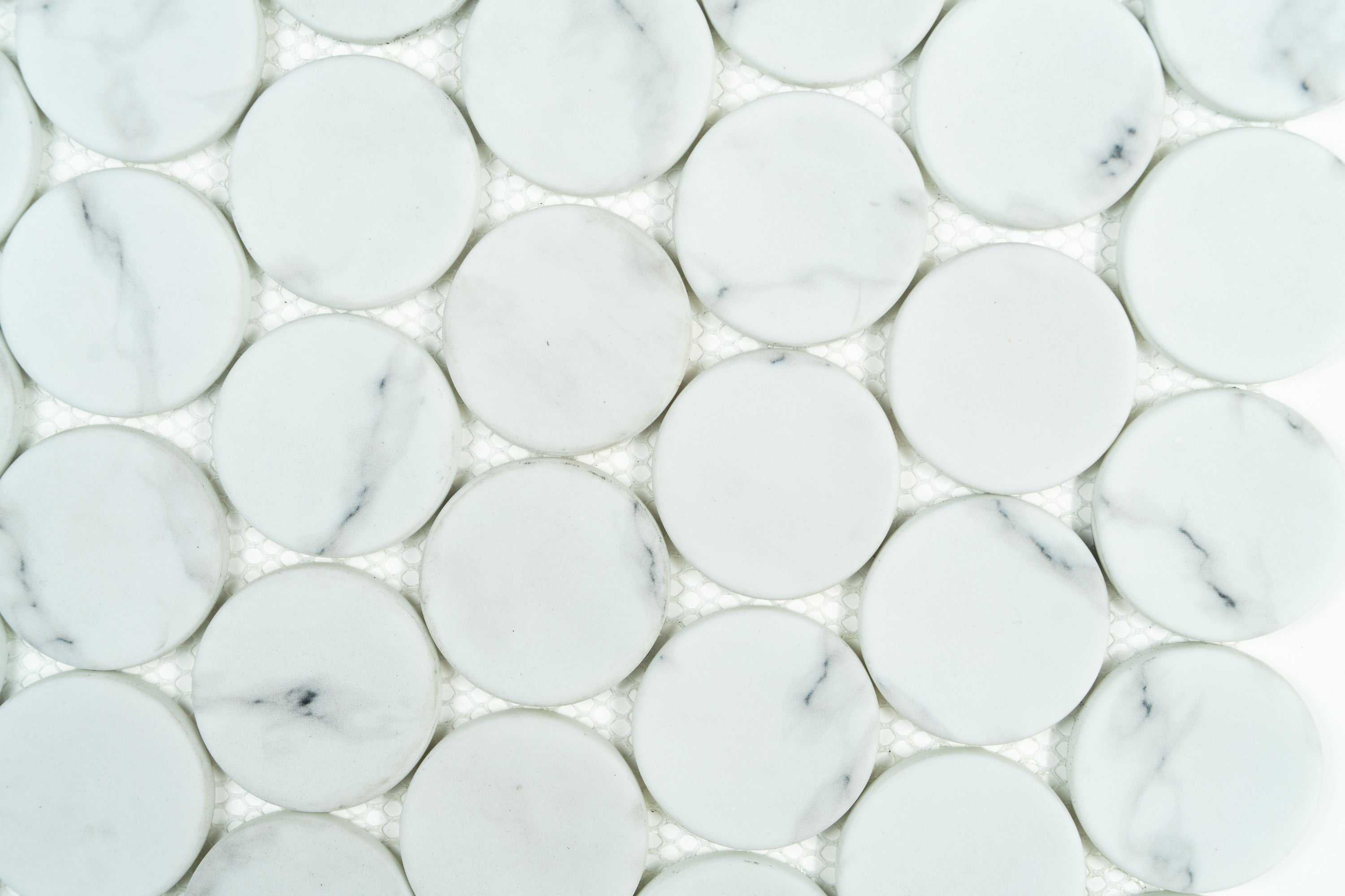 Bring refined simplicity and timeless sophistication to your design with our White Statuary Dots 12x12 Recycle Glass Mosaic. This stunning mosaic sheet features crisp Statuary White recycle glass circles set against a coordinating mesh backing, creating a soft, artistic pattern that elevates any surface. Its smooth matte finish delivers a clean, bright look that feels both modern and high-end. Whether you’re building a modern kitchen, a serene spa bath, or a statement accent wall in your Houston or Texas home, this mosaic tile adds classic appeal with effortless ease.